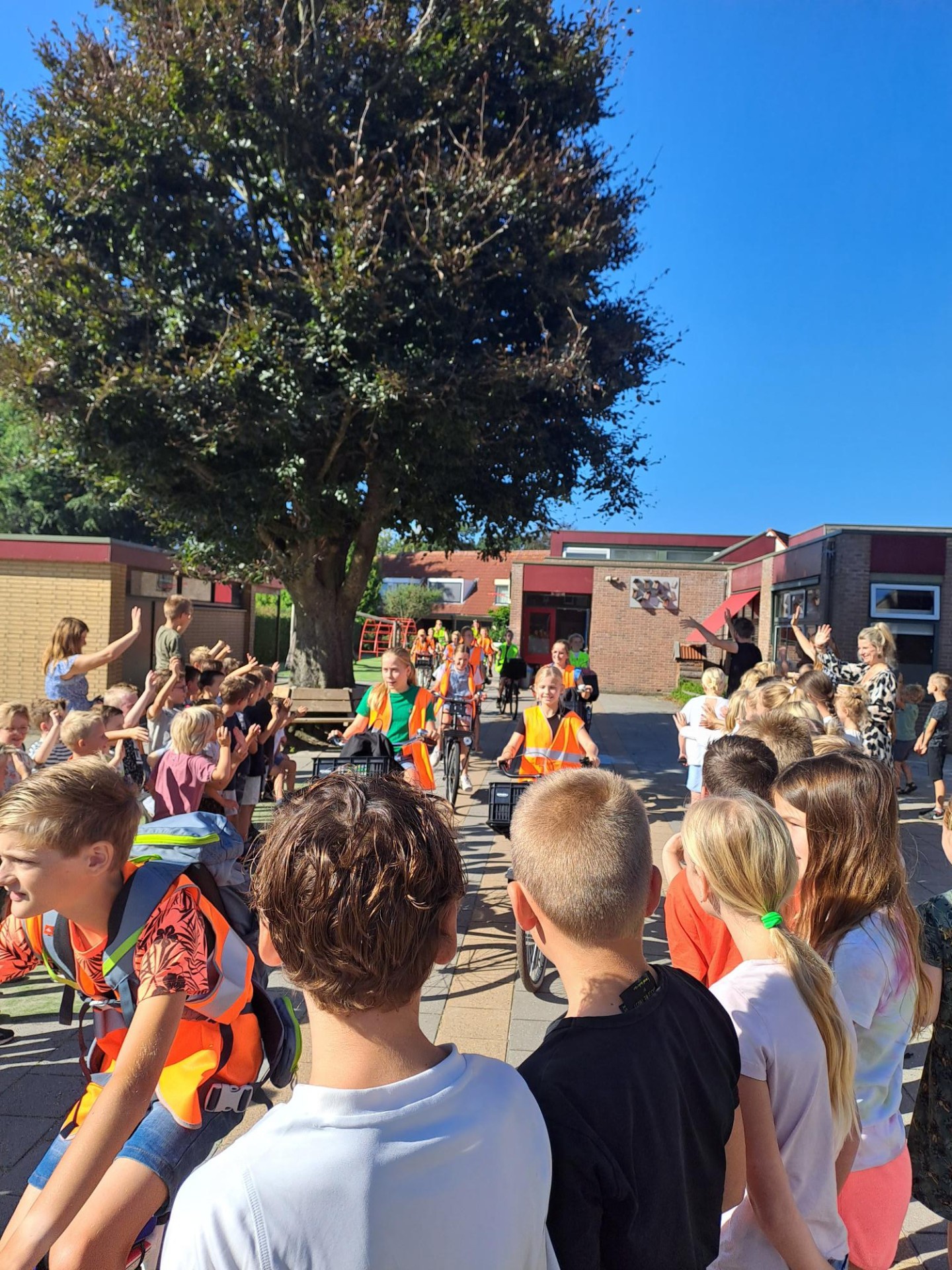 Daar gaan ze ... onze leerlingen uit groep 8 vertrokken vanmorgen onder prachtige weersomstandigheden.